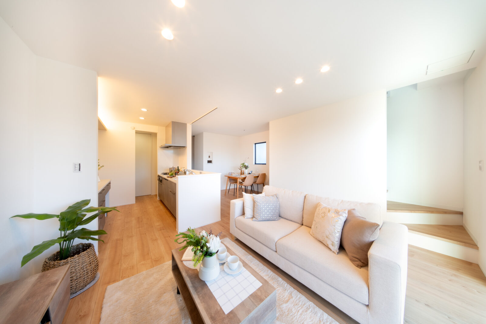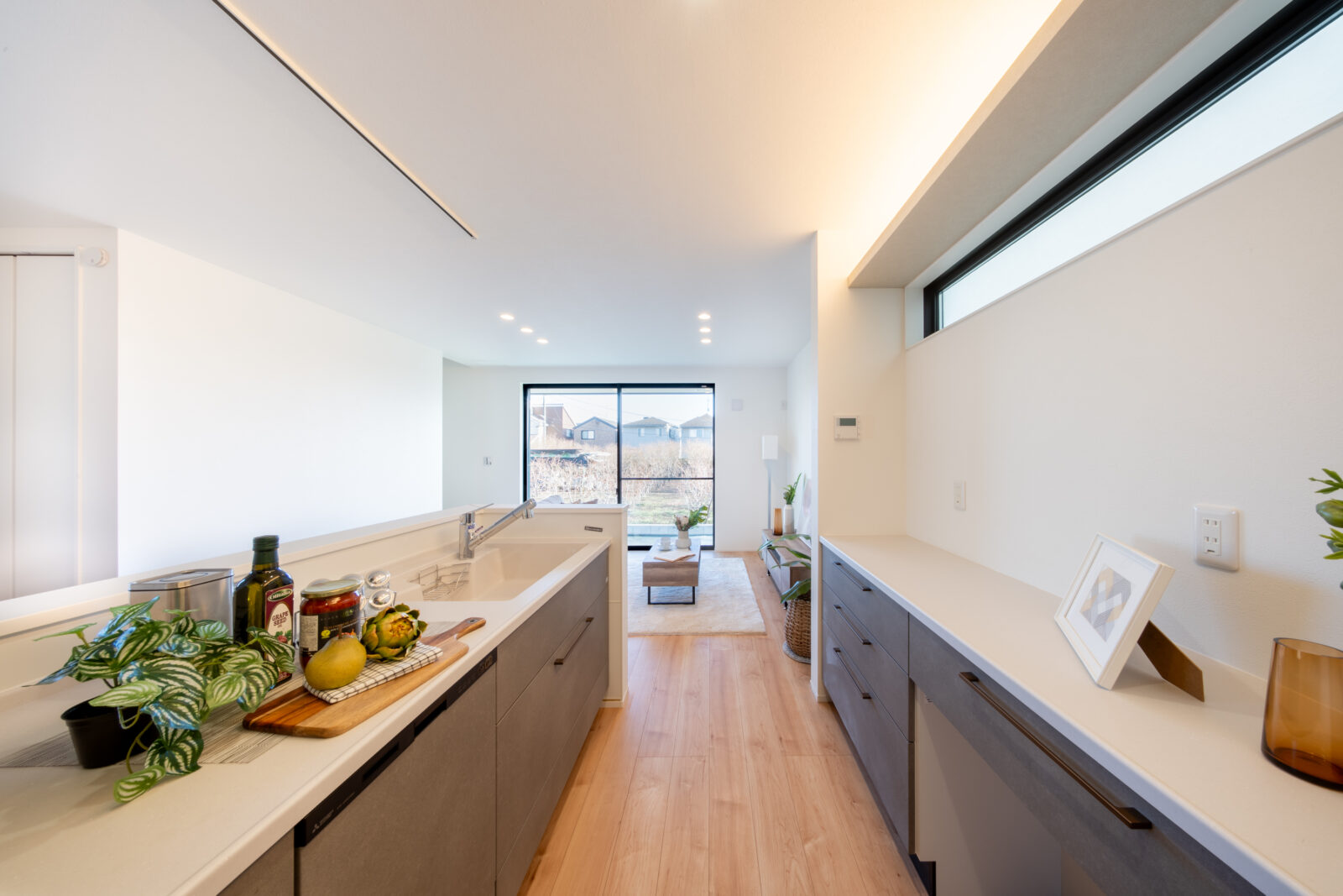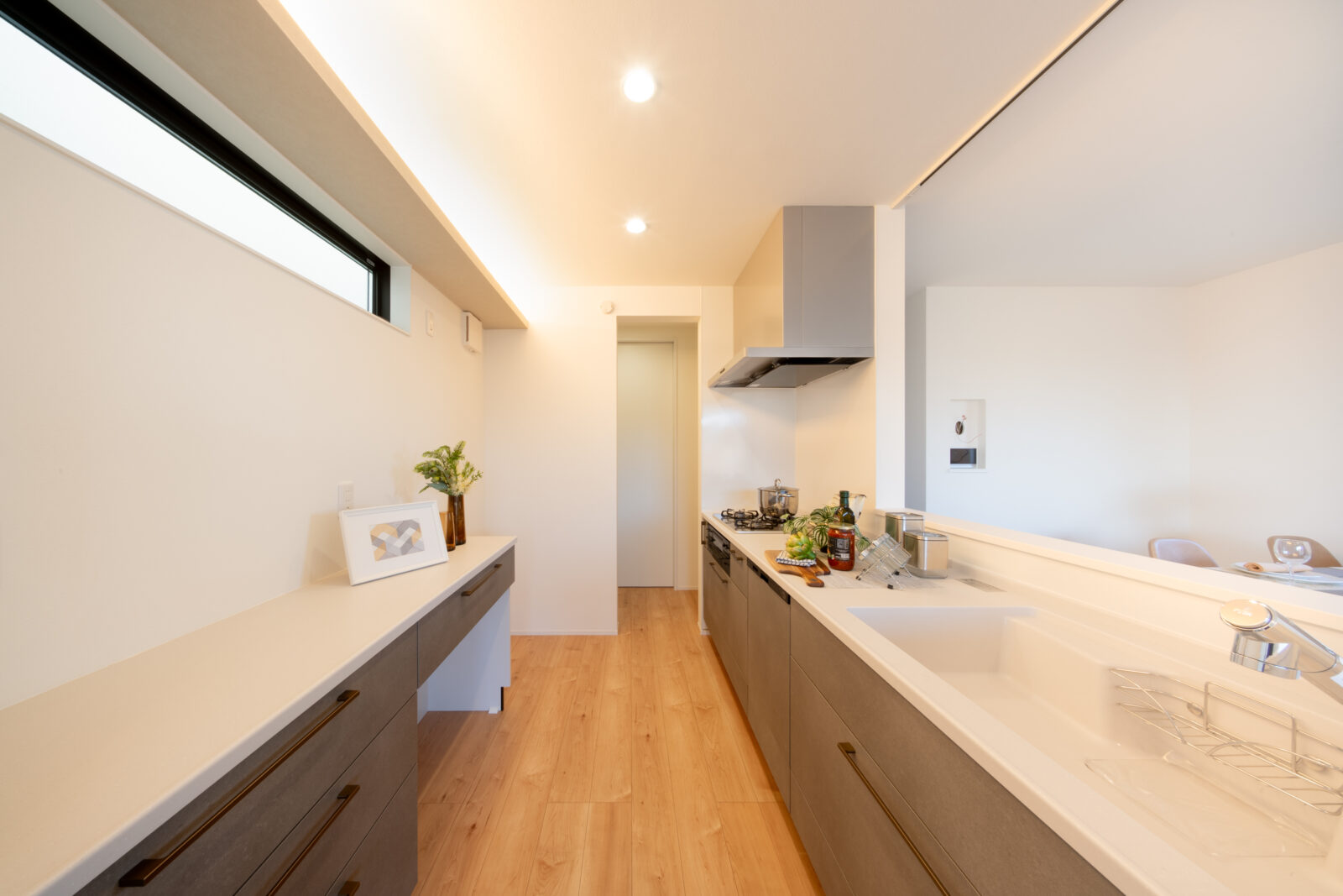 □玄関から洗面所、キッチンへと直接向かえる動線設計