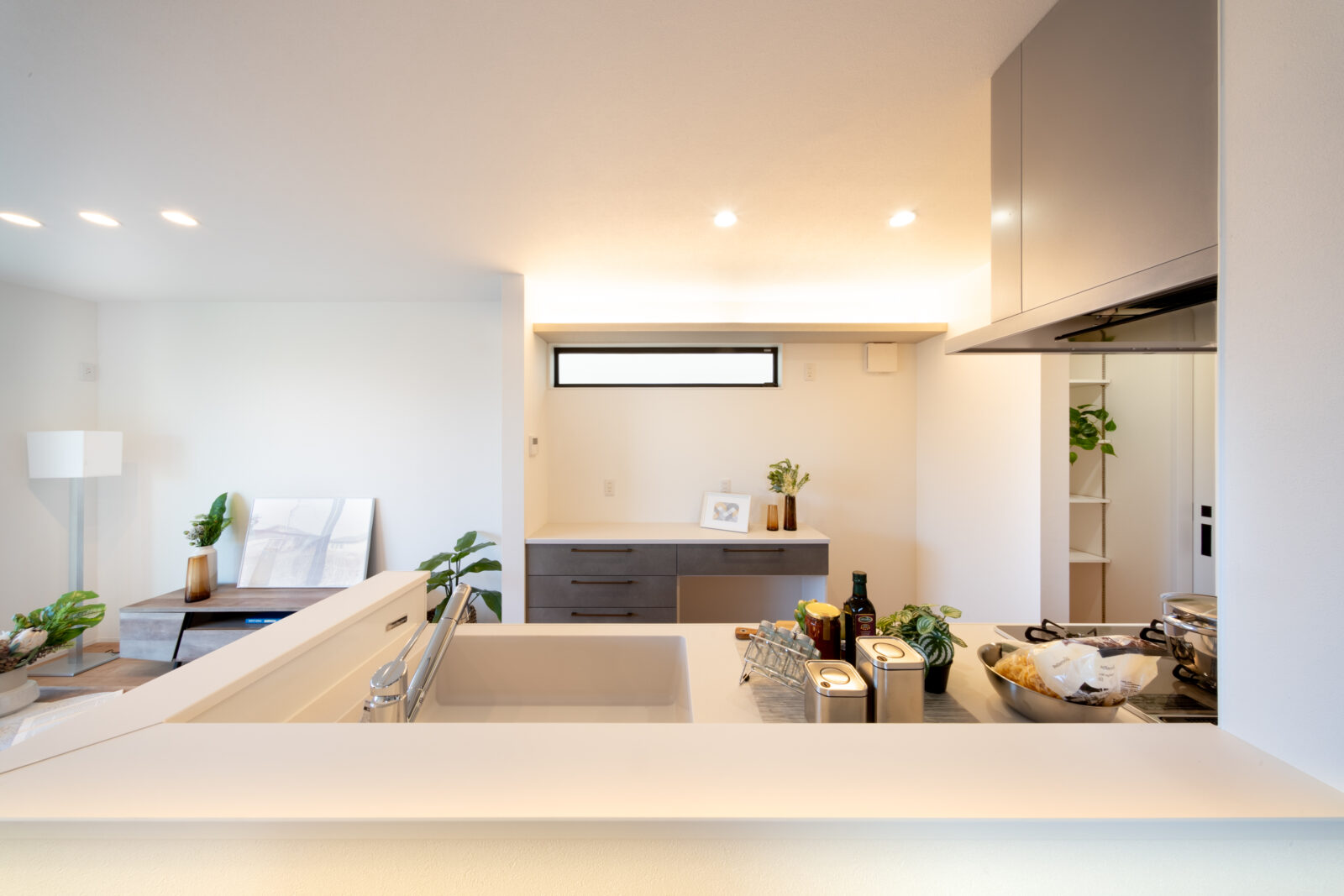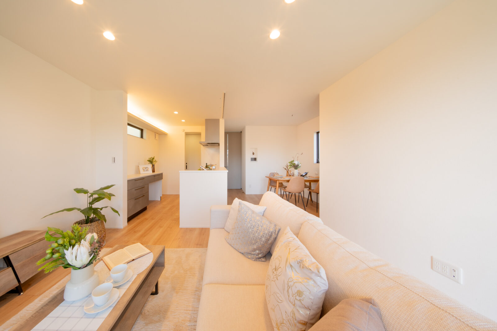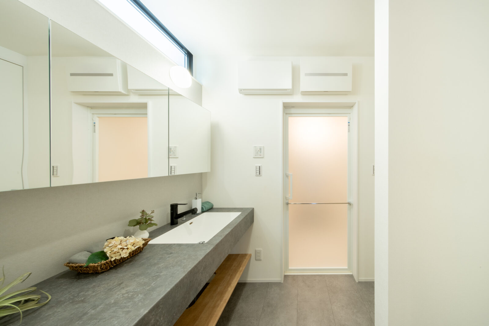 □玄関から洗面所、キッチンへと直接向かえる動線設計